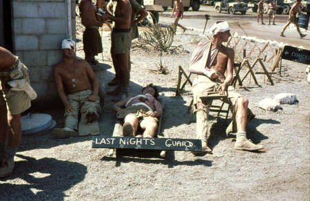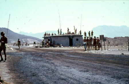 30 SQN on Guardroom roof looking out for 39 SQN's plane. |
