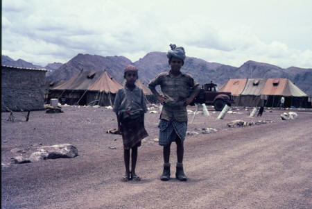 | Outside camp entrance showing bed sheet banners | Welcoming banners again | |